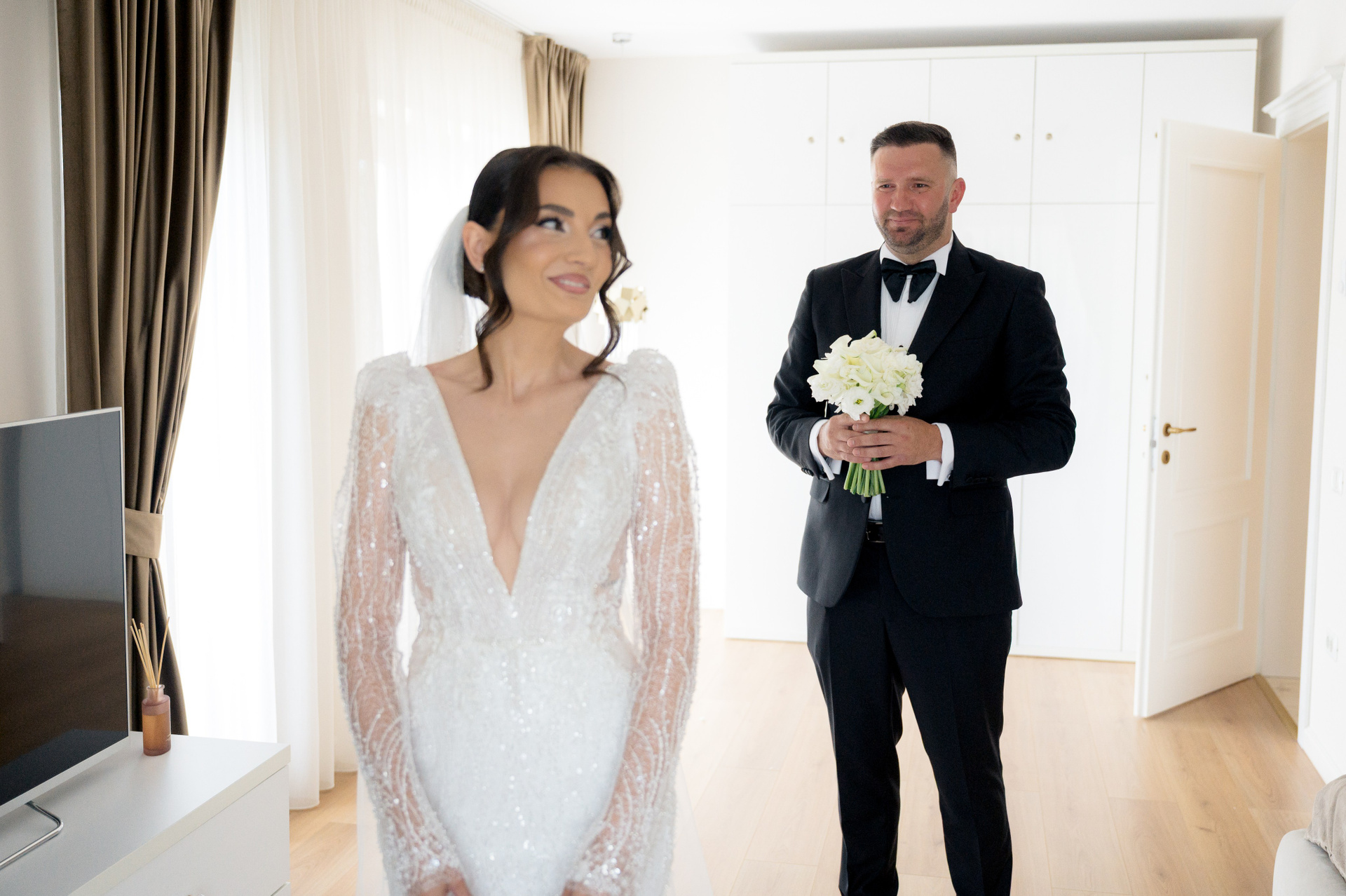 Ziua nunții Mălinei și a lui Silviu a început într-o atmosferă relaxată, plină de emoție și bucurie. Pregătirile dimineții, zâmbetele celor apropiați și energia momentelor dinaintea ceremoniei au conturat începutul unei zile speciale.